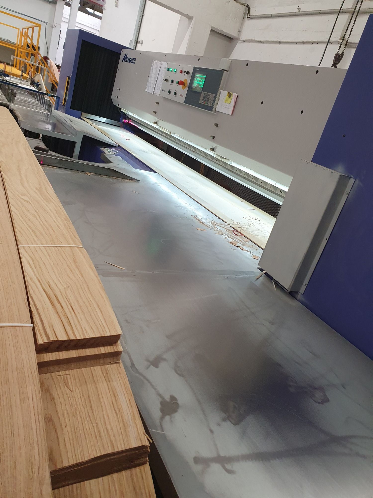 Se despliega el control de los palets entrantes de chapa bruta al almacén, su envío y trazabilidad a producción y control por medio de captura de datos en máquina de corte y guillotinado, proceso de juntadoras de formación de caras y posterior clasificación final en mesas de revisión.