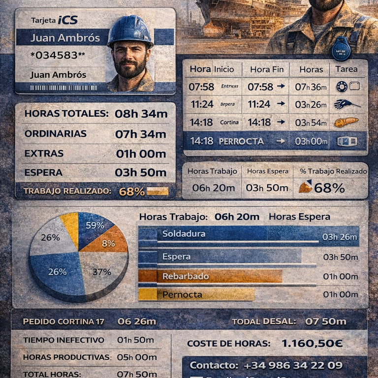 Esto permite asignar automáticamente horas de trabajo, espera o presencia, sin necesidad de partes manuales ni intervención del personal.